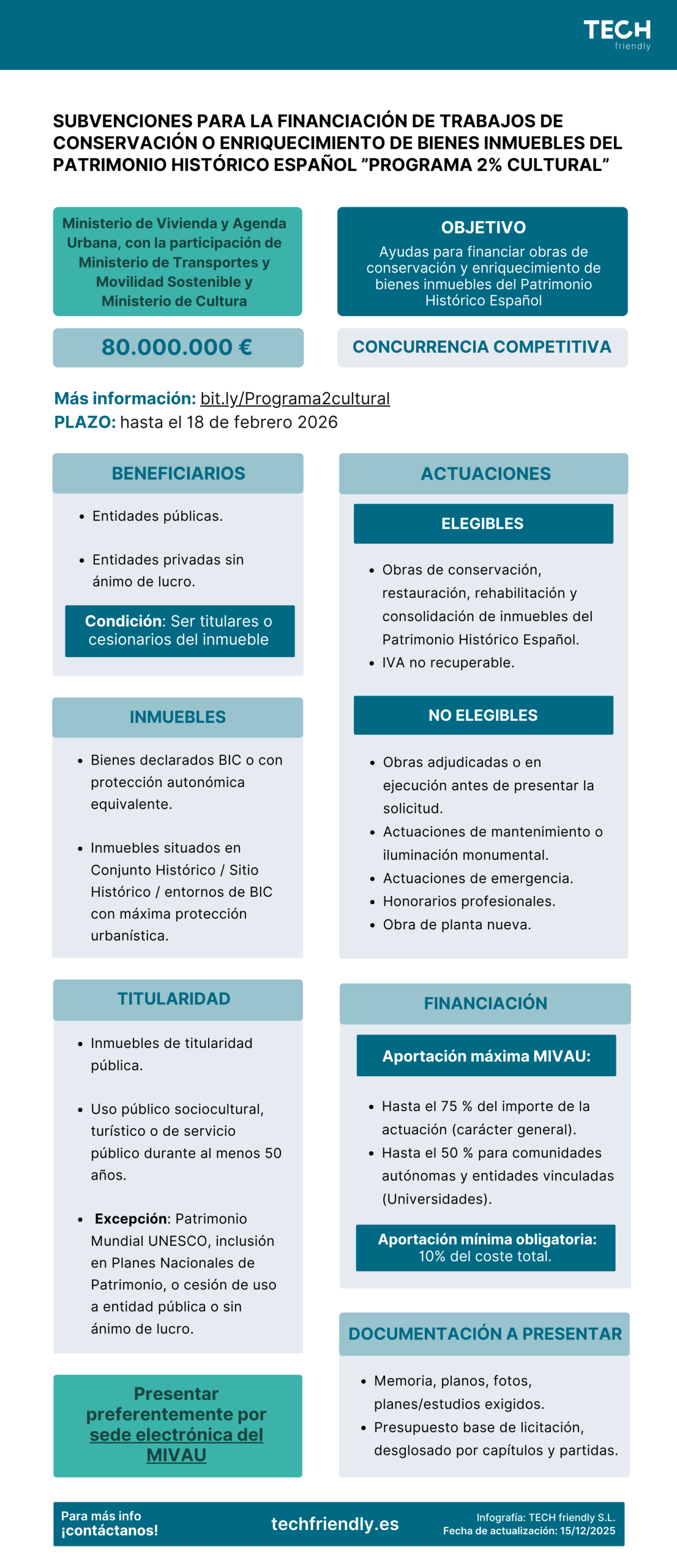 El plazo de presentación de solicitudes es hasta el 18 de febrero de 2026. Desde TECH friendly nos ponemos a disposición de nuestros/as clientes para aclarar cualquier duda o consulta.
