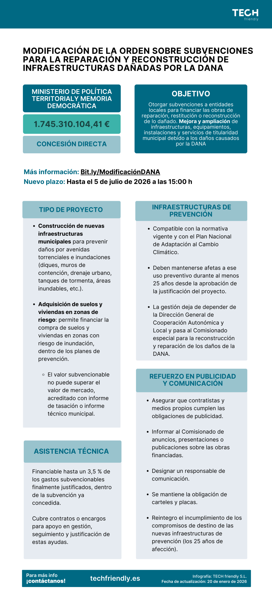 El plazo de presentación de solicitudes es hasta el 5 de julio de 2026, a las 15:00 horas. Desde TECH friendly nos ponemos a disposición de nuestros clientes para aclarar cualquier duda o consulta.